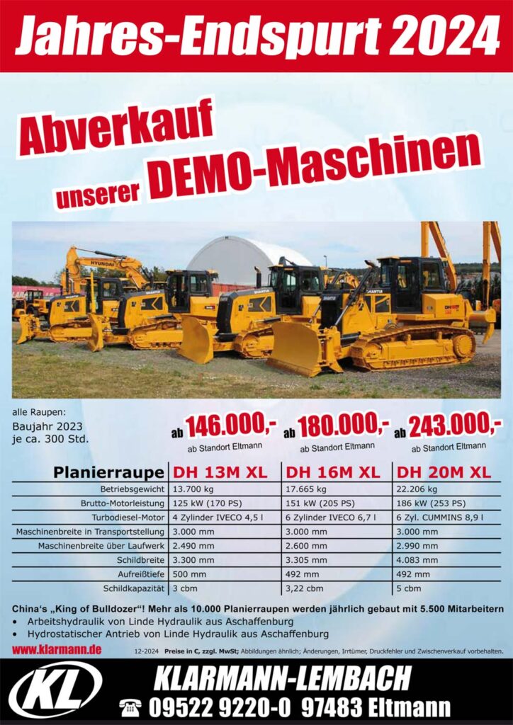 Die Bulldozer DEMO-Maschinen sind neuwertig und verfügen über europäische Technik: